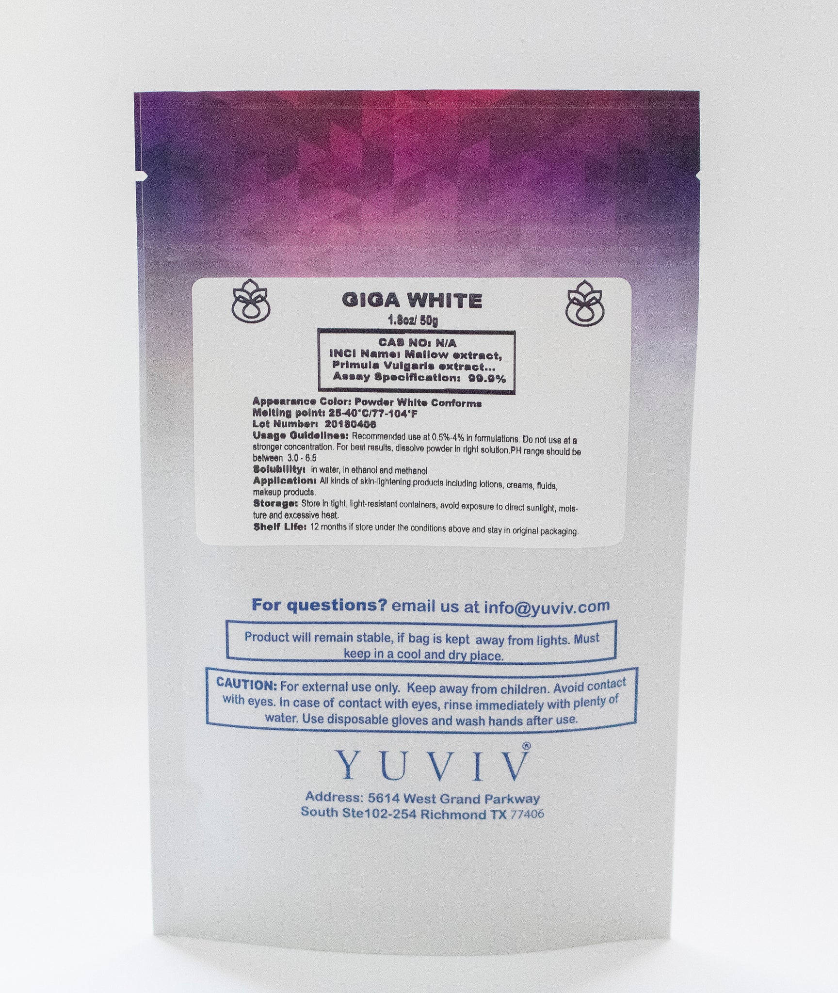 Description: Gigawhite is a skin brightening and dark spot corrector originally derived from the Alpine plant a natural source. Giga White is plant-based and chemical preservative-free skin lightening alternative to hydroquinone with minimal to no skin irritation. It contains a mixture of flavonoids, phenolic acids, polysaccharides, and iridoids - which are highly potent skin lightening and skin brightening botanicals.